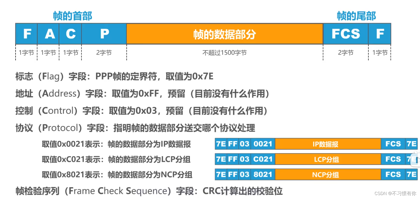 2、链路控制协议LCP 用于建立、配置以及测试数据链路的连接