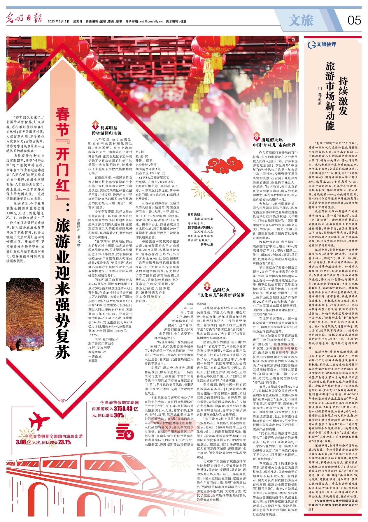 当被疫情打断的生活重新回归,渴望“诗和远方”的心情便难再阻挡。今年春节作为新冠病毒感染“乙类乙管”政策实施后的首个长假,旅游业回暖明显,人们纷纷走出家门,踏上旅途,一边享受异地他乡的悠闲浪漫,一边感受新春佳节的红火氛围。