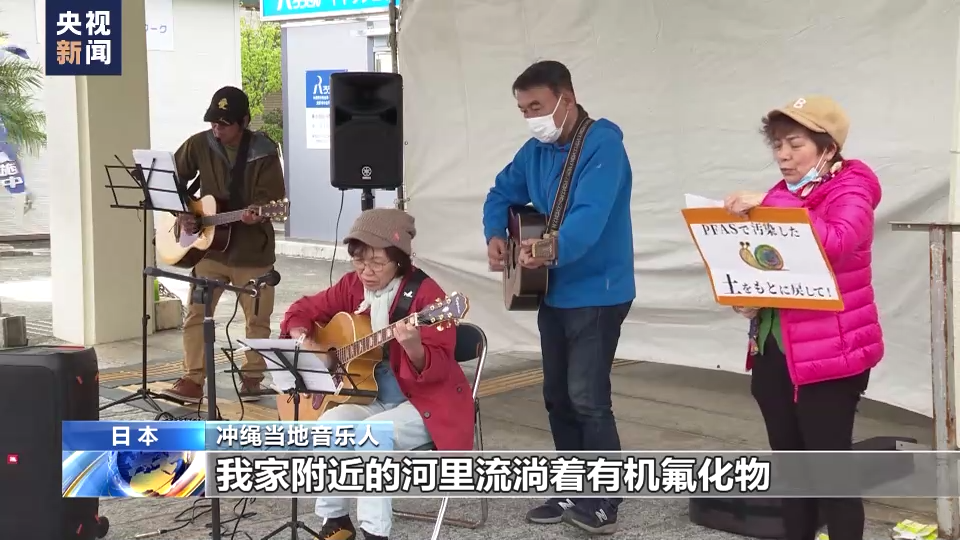 冲绳当地音乐人:灭火剂的泡沫到处飞散,我家附近的河里流淌着有机氟化物,但我还是最喜欢我生长的故乡。请还给我们生命之水,请还我们安静的学校、安心的生活,请还我们一个充满希望的未来。
