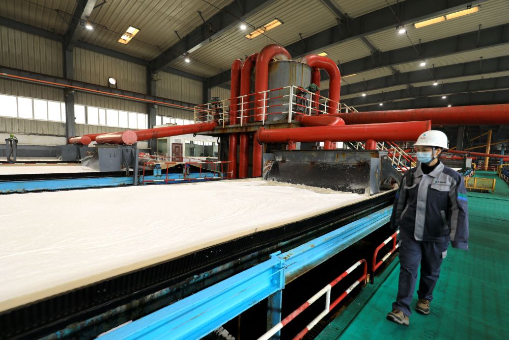 4月12日,在青海盐湖工业股份有限公司钾肥分公司生产车间,工作人员正在巡检。新华社记者韩方方摄