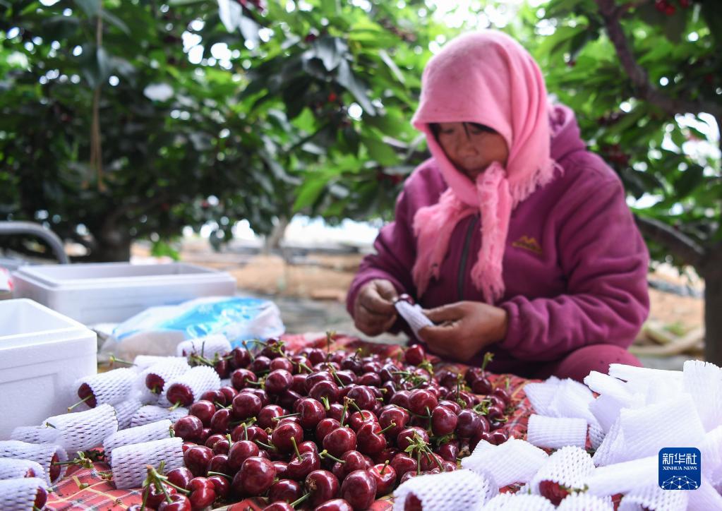 辽宁大连:樱桃采收忙---近日,辽宁省大连市旅顺口区的大棚樱桃陆续进入成熟期,樱桃种植户抓紧时间采收樱桃,供应市场。近年来,樱桃种植已成为促进当地农民增收的重要方式。