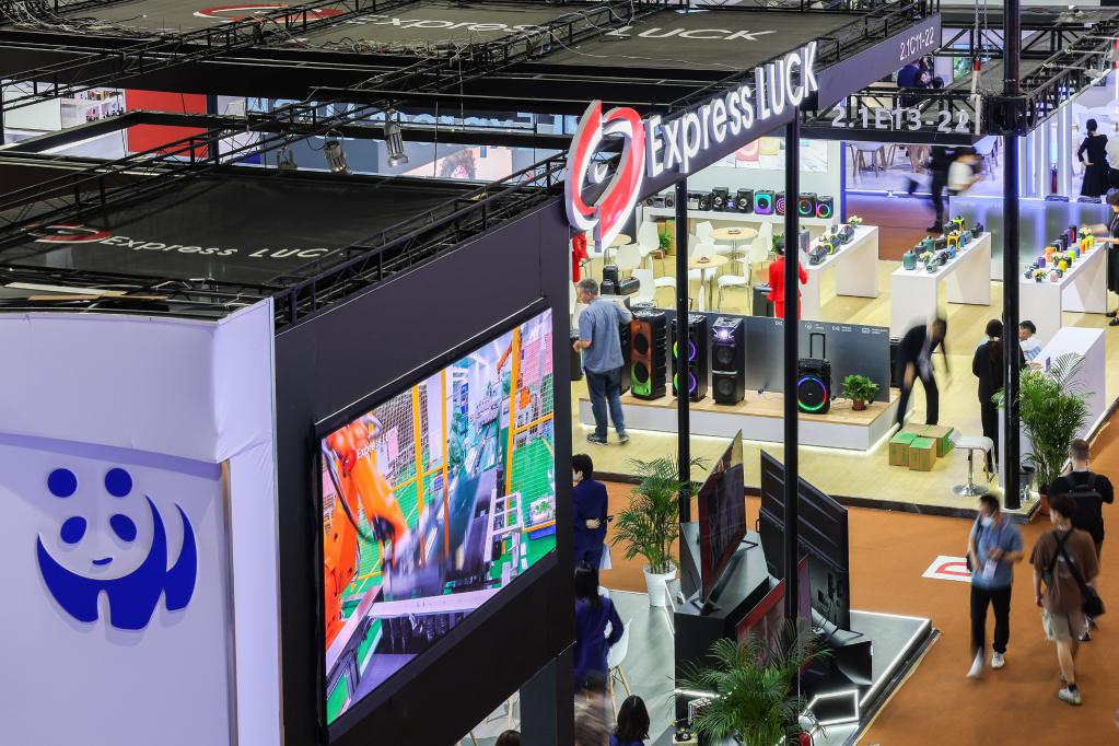 4月15日,客商在广交会电子消费品和信息产品展区参观。(新华社记者刘大伟摄)