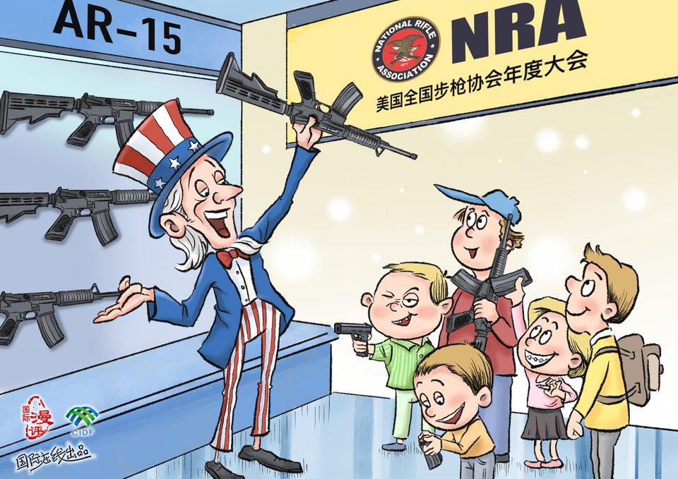 日前,由美国全国步枪协会举办的枪支展会上,多名儿童前往参观、摆弄枪支展品,有的孩子年仅6岁。