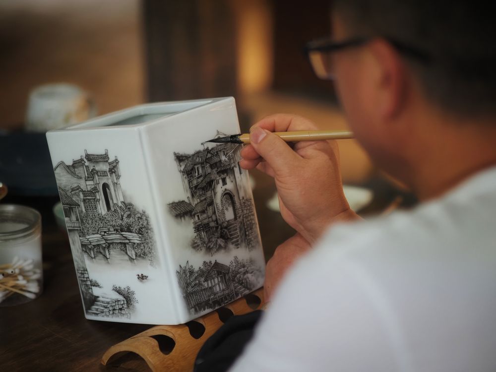 素色瓷胎为幻想驰骋提供了广阔疆域。近年来,景德镇吸引了5000多名来自全球各地的“洋景漂”来创新创业。随着与中亚文化交流不断深入,越来越多的中亚艺术家被景德镇开放、友好、恬静的气质吸引,来到这里学习陶瓷文化,推动制瓷技术革新。这座小城好比一座巨窑,各种奇思妙想都能浴火成器;它又宛如能纳百川的器皿,多元文化在此交汇融通,流光溢彩。