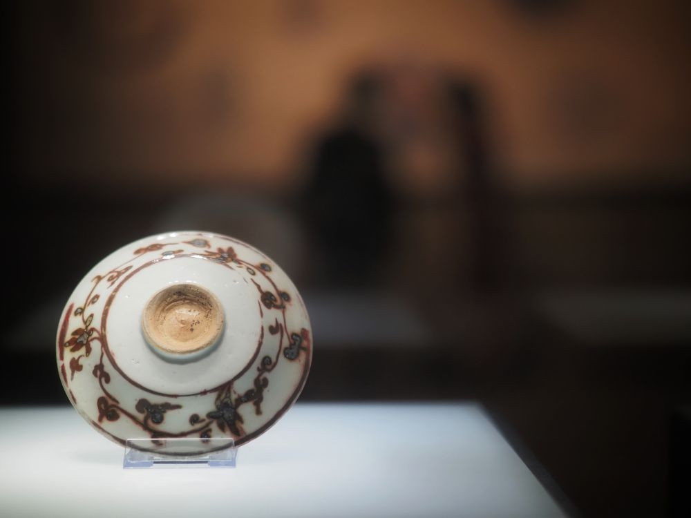 4月19日,江西省景德镇中国陶瓷博物馆,一盏彩绘碗在展出中。新华社记者赵宇摄