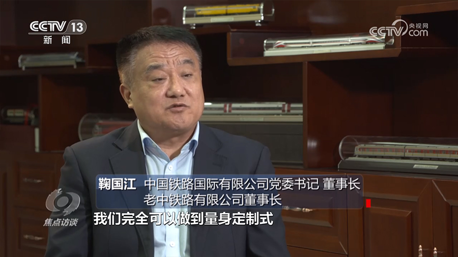 中国铁路国际有限公司党委书记、董事长 老中铁路有限公司董事长鞠国江:“我们更早的铁路走出去,有一些是援建项目。现在我们的铁路走出去,完全可以做到量身定制式的提供中国铁路产品。”