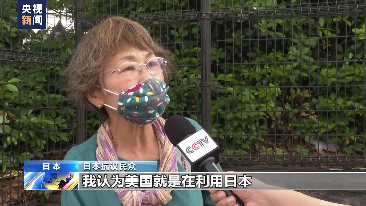 日本抗议民众:我认为美国就是在利用日本,为了展示美国自己的力量,在日本设置这么多的驻日美军基地。在当今世界上没有像这样的国家。我们强烈希望驻日美军离开日本,撤去驻日美军基地。
