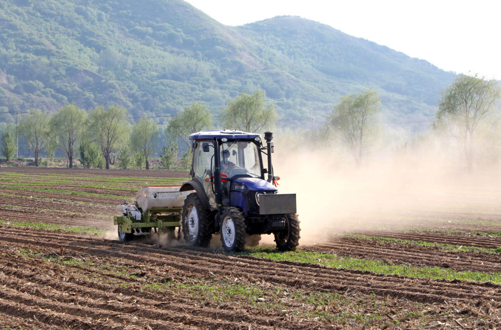 在铁岭市铁岭县,农民驾驶农机在播种大豆。新华社记者杨青 摄