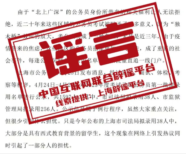 谣言:上海市司法局拟录用的38名公务员大部分是留学生?