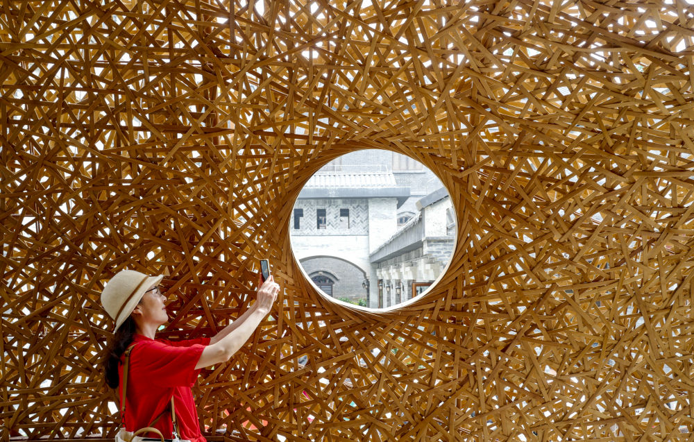 6月9日,游客在重庆开埠遗址公园内打卡拍照。